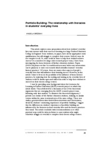 Brzeski, Angela (2011) Portfolio Building: The relationship with literacies in students’ everyday lives. Literacy and Numeracy Studies, 16 (1). pp. 25-38. ISSN 1441-0559