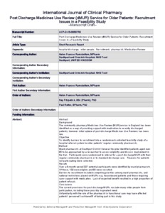 Post discharge medicines use review service for older patients: recruitment issues in a feasibility study.