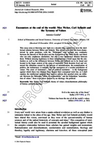Cerella, Antonio (2016) Encounters at the end of the world: Max Weber, Carl Schmitt and the Tyranny of Values. Journal of Cultural Research . pp. 1-20. ISSN 1479-7585