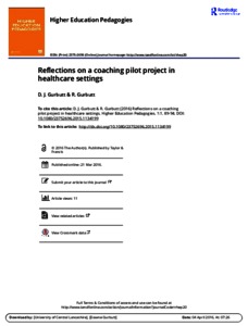 Gurbutt, Dawne and Gurbutt, R. (2016) Reflections on a coaching pilot project in healthcare settings. Higher Education Pedagogies, 1 (1). pp. 89-94. ISSN 2375-2696