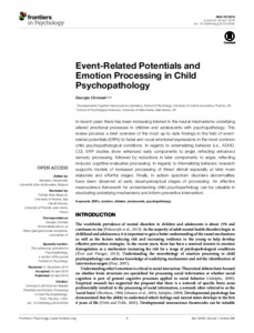 Chronaki, Georgia orcid iconORCID: 0000-0001-5146-2510 (2016) Event-Related Potentials and Emotion Processing in Child Psychopathology. Frontiers in Psychology, 7 (564). ISSN 1664-1078
