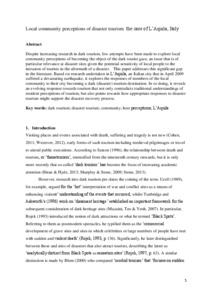 Despite increasing research in dark tourism, few attempts have been made to explore local community perceptions of becoming the object of the dark tourist gaze, an issue that is of particular relevance at disaster sites given the potential sensitivity of local people to the intrusion of tourists in the aftermath of a disaster. This paper addresses this significant gap in the literature. Based on research undertaken in L'Aquila, an Italian city that in April 2009 suffered a devastating earthquake, it explores the responses of members of the local community to their city becoming a dark (disaster) tourism destination. In so doing, it reveals an evolving response towards tourism that not only contradicts traditional understandings of resident perceptions of tourism, but also points towards how appropriate responses to disaster tourism might support the disaster recovery process.