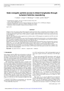 Laitinen, Timo Lauri mikael orcid iconORCID: 0000-0002-7719-7783, Kopp, A, Effenberger, F, Dalla, S orcid iconORCID: 0000-0002-7837-5780 and Marsh, M.S. (2016) Solar energetic particle access to distant longitudes through turbulent field-line meandering. Astronomy and Astrophysics, 591 . A18. ISSN 0004-6361