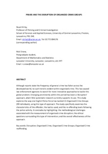 Although reports state the frequency of general crime has fallen across the developed world, no such trend is evident within organised crime. This has caused law enforcement agencies to search for more innovative approaches to tackle this global problem. Emerging prominently within this period has been a ‘disruption’ approach, albeit little systematic research currently supports its use. This study explores the way one English Police Force has tackled 15 Organised Crime Groups (99 individuals), using this type of approach. The study specifically examines the characteristics of the offender, the tactics used, and the re-offending levels following the police activity. It concludes by highlighting: the methodological challenges associated with the measurement of organised crime disruption; the ethical questions surrounding this type of intervention; and the overall effectiveness of the approach.