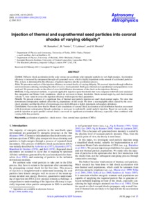 Injection of thermal and suprathermal seed particles into coronal shocks of varying obliquity.