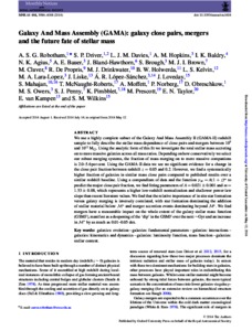 Robotham, A. S. G., Driver, S. P., Davies, L. J. M., Hopkins, A. M., Baldry, I. K., Agius, N. K., Bauer, A. E., Bland-Hawthorn, J., Brough, S. et al (2014) Galaxy And Mass Assembly (GAMA): galaxy close pairs, mergers and the future fate of stellar mass. Monthly Notices of the Royal Astronomical Society, 444 (4). pp. 3986-4008. ISSN 0035-8711