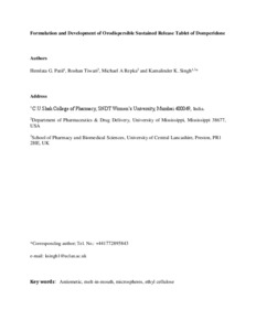 Formulation and development of orodispersible sustained release tablet of domperidone.