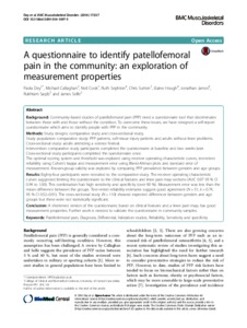 A questionnaire to identify patellofemoral pain in the community: an exploration of measurement properties.