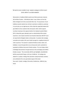 Morecambe is a traditional British seaside resort that experienced a dynamic ebb and flow of visitors. It still attracts visitors, many of whom are from the North of England and in the second half of their lives. The experiences of such traditional seaside markets have not been examined as carefully by academics in recent years as one might assume. All too often this subject falls between the gap between serious academic study and popular culture, which supports narratives focussing on the apparent decline of an idealised seaside. Instead this paper attempts to gain an understanding of this seaside experience, and is based around ten semi-structured interviews with 55-74 year old repeat North of England visitors to Morecambe. It considers their nostalgic connection and reaction to the resort, which emerged as a significant element of visitor experience. The seaside is considered timeless by these visitors and facilitates a reverie through which one can temporarily revisit a past which is populated by childhood memories of family members. The resort allows visitors to fleetingly transcend time, through immersion in the unchanging resort with its timeless seacape. This reconnection with the past highlights a dissatisfaction with the present which hinges on the loss of childhood. Yet nostalgia also allowed for a positive re-telling of the past which underpinned family narratives and contributed to the cross-generational appeal of the beach.