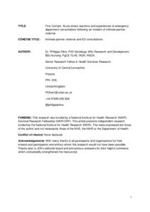 First Contact: Acute stress reactions and experiences of emergency department consultations following an incident of intimate partner violence.