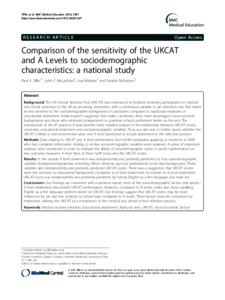 Comparison of the sensitivity of the UKCAT and A levels to sociodemographic characteristics : a national study.
