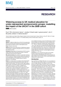 Widening access to UK medical education for under-represented socioeconomic groups : modelling the impact of the UKCAT in the 2009 cohort.