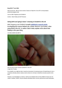 Freebirthing or unassisted birth is the active choice made by a woman to birth without a trained professional present, even where there is access to maternity provision. This is a radical childbirth choice, which has potential morbidity and mortality risks for mother and baby. While a number of studies have explored women’s freebirth experiences, there has been no research undertaken in the UK. The aim of this study was to explore and identify what influenced women’s decision to freebirth in a UK context.