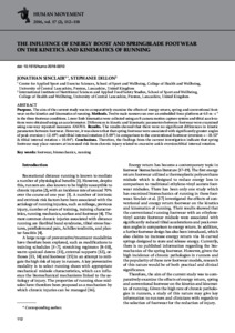 Results. The results showed that there were no significant differences in kinetic parameters between footwear. However, it was shown that that spring footwear were associated with significantly greater angles of peak eversion (–12.49°) and tibial internal rotation (13.09°) in comparison to the conventional footwear (eversion = –10.52 & tibial internal rotation = 10.84°).