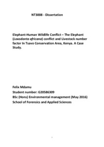Mdamu, Felix (2016) Elephant-Human Wildlife Conflict – The Elephant (Loxodonta africana) conflict and Livestock number factor In Tsavo Conservation Area, Kenya. A Case Study. [Dissertation]
