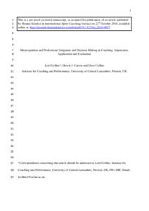 Collins, L. orcid iconORCID: 0000-0002-7478-1140, Carson, H.J., orcid iconORCID: 0000-0002-3785-606X and Collins, D. orcid iconORCID: 0000-0002-7601-0454 (2016) Metacognition and professional judgment and decision making in coaching: Importance, application and evaluation. International Sport Coaching Journal, 3 (3). pp. 355-361. ISSN 2328-918X