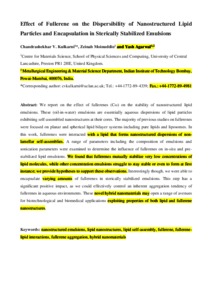 Effect of fullerene on the dispersibility of nanostructured lipid particles and encapsulation in sterically stabilized emulsions.