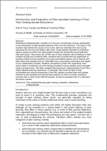 Tariq, V. N. (2005) Introduction and evaluation of peer assisted learning in first-year undergraduate bioscience. Bioscience Education, 6 . ISSN 1479-7860