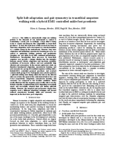 Split-belt adaptation and gait symmetry in transtibial amputees walking with a hybrid EMG controlled ankle-foot prosthesis.