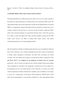 The NHS junior doctors' strike on 12 January was a timely reminder of the productivity agenda having an impact on working practices. The unprecedented dispute between the Department of Health (DH) and the British Medical Association (BMA) concerns, among other things, pay progression, relaxing rules on rest, working a Saturday for the same pay as a weekday, and what constitutes a night duty (BMA, 2016). If the contractual demands are accepted then the likely effect would be the same pay for working a Sunday, and night duties being extended to nursing and throughout the NHS.