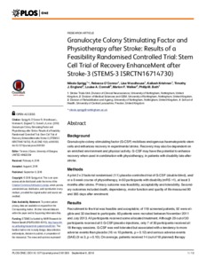 Granulocyte Colony Stimulating Factor and Physiotherapy after Stroke: Results of a Feasibility Randomised Controlled Trial: Stem Cell Trial of Recovery EnhanceMent after Stroke-3 (STEMS-3 ISRCTN16714730).