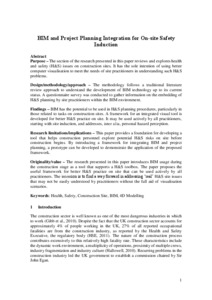 Findings – BIM has the potential to be used in H&S planning procedures, particularly in those related to tasks on construction sites. A framework for an integrated visual tool is developed for better H&S practice on site. It may be used actively by all practitioners, starting with site induction, and addresses, inter alia, personal hazard perception.