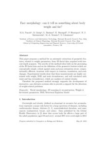 Pascali, MA, Giorgi, D, Bastiani, L, Buzzigoli, E, Henriquez, P orcid iconORCID: 0000-0001-6582-5351, Matuszewski, BJ orcid iconORCID: 0000-0001-7195-2509, Morales, MA and Colantonio, S (2016) Face morphology: Can it tell us something about body weight and fat? Computers in Biology and Medicine, 76 . pp. 238-249. ISSN 0010-4825