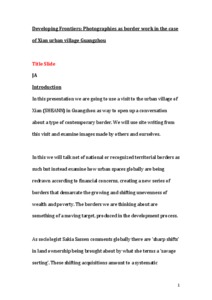 Developing Frontiers: Photographies as Border work. The case of Xian Urban Village, Guangzhou.