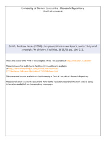 Smith, Andrew James (2008) User perceptions in workplace productivity and strategic FM delivery. Facilities, 26 (5/6). pp. 196-212. ISSN 0263-2772