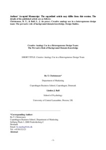 Creative analogy use in a heterogeneous design team: The pervasive role of background domain knowledge.