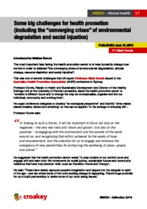 Some big challenges for health promotion (including the “converging crises” of environmental degradation and social injustice).