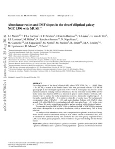 Mentz, JJ, La Barbera, F, Peletier, RF, Falcon-Barroso, J, Lisker, T, van de Ven, G, Loubser, SI, Hilker, M, Sanchez-Janssen, R et al (2016) Abundance ratios and IMF slopes in the dwarf elliptical galaxy NGC 1396 with MUSE. Monthly Notices of the Royal Astronomical Society . ISSN 0035-8711