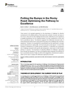 There seems to be general agreement on the importance of challenge for effective development on the athlete pathway. What seems less coherent, however, are ideas on how much, when and how this challenge should be used. Reflecting our own experience as applied practitioners and our ongoing research, we offer a perspective on this work from a practitioner stance. The literature suggests that differences between levels of adult achievement relate more to what performers bring to the challenges than what they experience. Therefore, it is essential that young athletes have the opportunity to develop psycho-behavioural and coping skills, and have adequate social support, to ensure that adversity is interpreted as a positive growth experience. A periodized and progressive set of challenge, preceded with specific skill development, would seem to offer the best pathway to success. The importance of preparing athletes for challenges, supporting them through the experience, and then encouraging positive evaluation and reflection is key to successful outcome. Finally, we offer some suggestions, structures and systems which can be used to support the skill-based approach promoted.