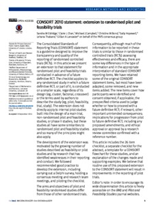 The CONSORT Statement (CONsolidated Standards for Reporting Trials) is a reporting guideline designed to improve the transparency and quality of the reporting of randomised controlled trials (RCTs). In this article, we present an extension to the CONSORT Statement for randomised pilot and feasibility trials conducted in advance of a future definitive RCT. The checklist applies to any randomised study in which a future definitive RCT, or a part of it, is conducted on a smaller scale, regardless of its design (eg cluster, factorial, cross-over) or the terms (eg pilot, feasibility, trial, study) used by authors to describe the study. The extension does not directly apply to internal pilot studies built into the design of a main trial, non-randomised pilot and feasibility studies, or phase II studies but these studies all have some similarities to randomised pilot and feasibility studies and so many of the principles may also apply to these studies.