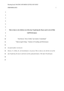 Despite substantial research in golf on pre-shot routines, our understanding of what elite golfers are or potentially should be focusing on beyond this phase of performance is limited. Accordingly, interviews were conducted with elite-level golfers and support practitioners to explore what golfers are and should be attending to before competition and between shots and holes. Results pointed to a number of important and novel processes for use at macro (i.e., precompetition) and meso (i.e., between shots and holes) levels, including the role of shared mental models across team members.