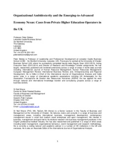 Organizational Ambidexterity and the Emerging-to-Advanced Economy Nexus: Cases from Private Higher Education Operators in the United Kingdom.