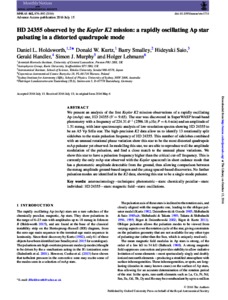 be an A5 Vp SrEu star. The high-precision K2 data allow us to identify 13 rotationally split sidelobes to the main pulsation frequency of HD 24355. This number of sidelobes combined with an unusual rotational phase variation show this star to be the most distorted quadrupole roAp pulsator yet observed. In modelling this star, we are able to reproduce well the amplitude modulation of the pulsation, and find a close match to the unusual phase variations. We show this star to have a pulsation frequency higher than the critical cut-off frequency. This is currently the only roAp star observed with the Kepler spacecraft in short cadence mode that has a photometric amplitude detectable from the ground, thus allowing comparison between the mmag amplitude ground-based targets and the μmag spaced-based discoveries. No further pulsation modes are identified in the K2 data, showing this star to be a single-mode pulsator.