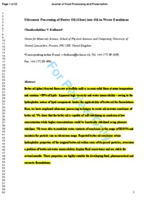 Ultrasonic processing of butter oil (Ghee) into oil‐in‐water emulsions.