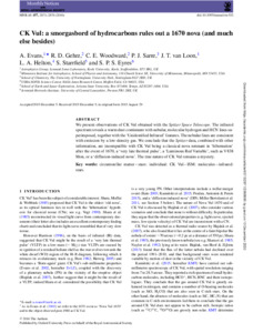 Evans, A, Gehrz, RD, Woodward, CE, Sarre, PJ, van Loon, JT, Helton, LA, Starrfield, S and Eyres, SPS (2016) CK Vul: a smorgasbord of hydrocarbons rules out a 1670 nova (and much else besides). Monthly Notices of the Royal Astronomical Society, 457 (3). pp. 2871-2876. ISSN 0035-8711