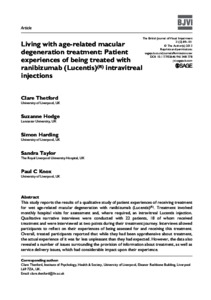 Living with AMD treatment: Patient experiences of being treated with Ranibizumab (Lucentis) intravitreal injections.