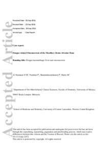Al-Namnam, N M, Nambiar, P, Shanmuhasuntharam, P and Harris, Malcolm (2017) Dengue related Osteonecrosis of the Maxillary Dento-Alveolar Bone. Australian Dental Journal . ISSN 0045-0421