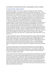 This paper looks at the function and importance of the straight character in comedy using examples from a taster for a comedy series staring British Actress Alison Steadman. It analyses why this role is over looked and often unappreciated and then looks at why the straight character in specifically adult animation is predominantly a woman.