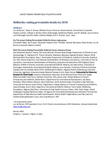 de Bernis, Luc, Kinney, Mary V, Stones, William, ten Hoope-Bender, Petra, Vivio, Donna, Leisher, Susannah Hopkins, Bhutta, Zulfiqar A, Gülmezoglu, Metin, Mathai, Matthews et al (2016) Stillbirths: ending preventable deaths by 2030. The Lancet, 387 (10019). pp. 703-716. ISSN 0140-6736