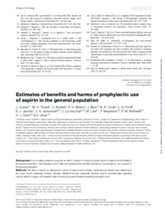 Estimates of benefits and harms of prophylactic use of aspirin in the general population.