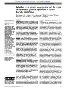 Individual crypt genetic heterogeneity and the origin of metaplastic glandular epithelium in human Barrett's oesophagus.