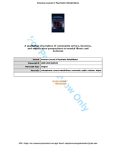 A Qualitative Description of Community Service, Business and Organization Perspectives on Mental Illness and Inclusion.