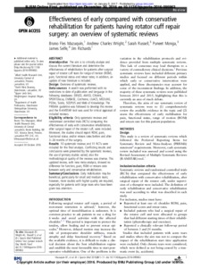 Effectiveness of early compared with conservative rehabilitation for patients having rotator cuff repair