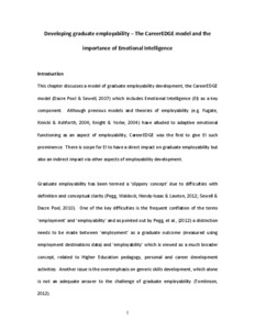 This chapter discusses a model of graduate employability development, the CareerEDGE model (Dacre Pool and Sewell 2007) which includes Emotional Intelligence (EI) as a key component. Although previous models and theories of employability (e.g. Fugate et al. 2004; Knight and Yorke 2004) have alluded to adaptive emotional functioning as an aspect of employability, CareerEDGE was the first to give EI such prominence. There is scope for EI to have a direct impact on graduate employability but also an indirect impact via other aspects of employability development.