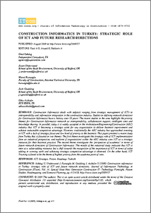Construction Informatics deals with subjects ranging from strategic management of ICTs to interoperability and information integration in the construction industry. Studies on defining research directions for Construction Informatics have a history over 20 years. The recent studies in the area highlight the priority themes for Construction Informatics research as interoperability, collaboration support, intelligent sites and knowledge sharing. In parallel, today it is widely accepted in the Architecture/Engineering/Construction (AEC) industry that ICT is becoming a strategic asset for any organisation to deliver business improvement and achieve sustainable competitive advantage. However, traditionally the AEC industry has approached investing in ICT with a lack of strategic focus and low level of priority to the business. This paper presents a recent study from Turkey that is focused on two themes. The first theme investigates the strategic role of ICT implementations from an industrial perspective, and explores if organisations within the AEC industry view ICT as a strategic resource for their business practice. The second theme investigates the ‘perspective of academia’ in terms of future research directions of Construction Informatics. The results of the industrial study indicates that ICT is seen as a value-adding resource, but a shift towards the recognition of the importance of ICT in terms of value adding in winning work and achieving strategic competitive advantage is observed. On the other hand, ICT Training is found to be the theme of highest priority from the academia point of view.