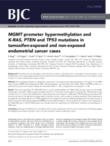 MGMT promoter hypermethylation and K-RAS, PTEN and TP53 mutations in tamoxifen-exposed and non-exposed endometrial cancer cases.